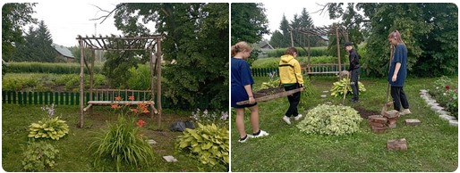 Продолжается работа по благоустройству школьной территории. Инициативная группа ребят под руководством Зайцевой КВ устанавливают беседку для отдыха.